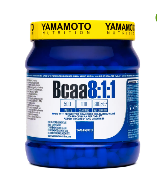 Yamamoto® Nutrition BCAA 8:1:1 è un integratore alimentare a base di aminoacidi a catena ramificata (BCAA – Branched Chain Amino Acid) con vitamine B1 e B6.