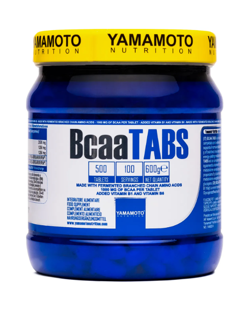 BCAA TABS di Yamamoto Nutrition è una matrice composta al 100% da amminoacidi ramificati in rapporto 2:1:1, ottenuti tramite fermentazione vegetale. Gli amminoacidi ramificati (BCAA – Branched Chain Amino Acid) sono 3 amminoacidi facenti parte del gruppo degli amminoacidi essenziali, ovvero quelli che il corpo umano non è in grado di sintetizzare in modo autonomo in quantità sufficiente a soddisfare i fabbisogni, e che devono essere quindi obbligatoriamente assunti tramite la dieta. È importante ricordare che i BCAA fanno parte degli amminoacidi essenziali EAA (Essential Amino Acid), e che gli amminoacidi sono le molecole organiche che il nostro corpo utilizza per formare le proteine.
