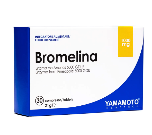 Yamamoto® Research Bromelina è l’integratore formulato con 1000mg di Bromelina con attività pari a 5000 GDU per dose giornaliera per favorire la funzione digestiva, il drenaggio dei liquidi corporei e la funzionalità del microcircolo, contrastando gli inestetismi dovuti alla ritenzione idrica ed alleviando la sensazione di gambe pesanti. La Bromelina è un enzima estratto dal gambo dell’ananas: possiede un’attività che viene definita proteolitica, ovvero in grado di rompere i legami peptidici tra le proteine. Grazie a questa caratteristica, la Bromelina riesce a scomporre la complessa struttura delle proteine, così che il corpo possa digerirle ed assorbirne i nutrienti, scartando invece le parti non utili. Abbinato ad un pasto proteico, ad esempio a base di carne, l’utilizzo di Bromelina farà in modo di aiutare sensibilmente la digestione.