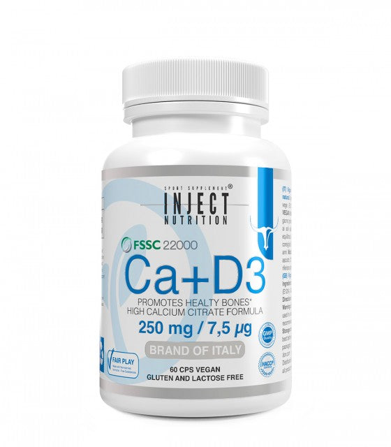 Ca+D3 di Inject Nutrition® è un integratore alimentare a base di Calcio + Vitamina D3, glutine, lattosio e 100% vegan.