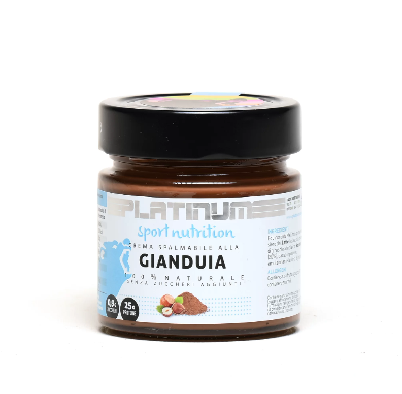 Edulcorante Maltitolo, Proteine del siedo del latte isolate , olio di semi di girasole alto oleico, Nocciole (20%), cacao in polvere, emulsionante lecitina di girasole.