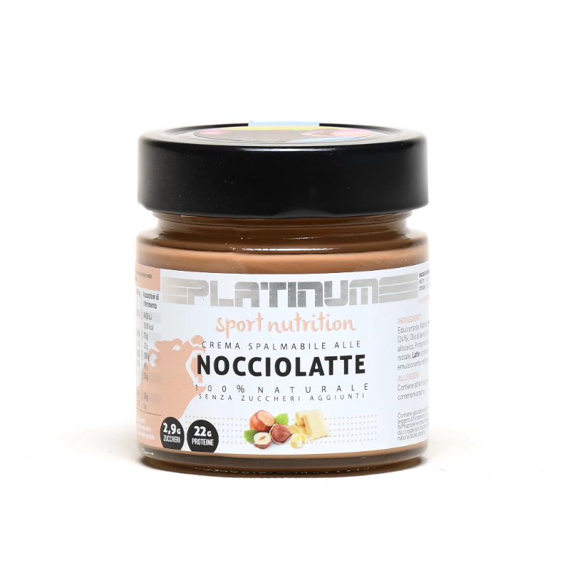Edulcorante: Maltitolo, nocciole 24%, Olio di semi di girasole altoleico , Proteine del siero del latte isolate , Latte scremato in polvere, emulsionante :lecitina di girasole.