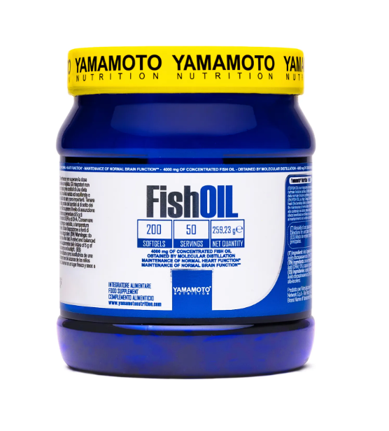 Fish Oil Molecular distillation è l’integratore di Yamamoto Nutrition a base di olio di pesce altamente concentrato e purificato attraverso un processo di distillazione molecolare. L’olio di pesce è ricco in acidi grassi Omega-3, come EPA (acido eicosapentaenoico) e DHA (acido docosaesaenoico), nutrienti essenziali per sostenere la salute del cuore, delle articolazioni, del cervello e degli occhi. L’assunzione regolare di olio di pesce purificato offre diversi benefici per la salute: permette di ridurre l’infiammazione, previene l’insorgenza di malattie cardiovascolari, supporta la salute del cervello e delle articolazioni, regola i livelli di colesterolo e trigliceridi nel sangue e mantiene la normale capacità visiva (l'effetto benefico si ottiene con l'assunzione giornaliera di 250 mg di DHA).