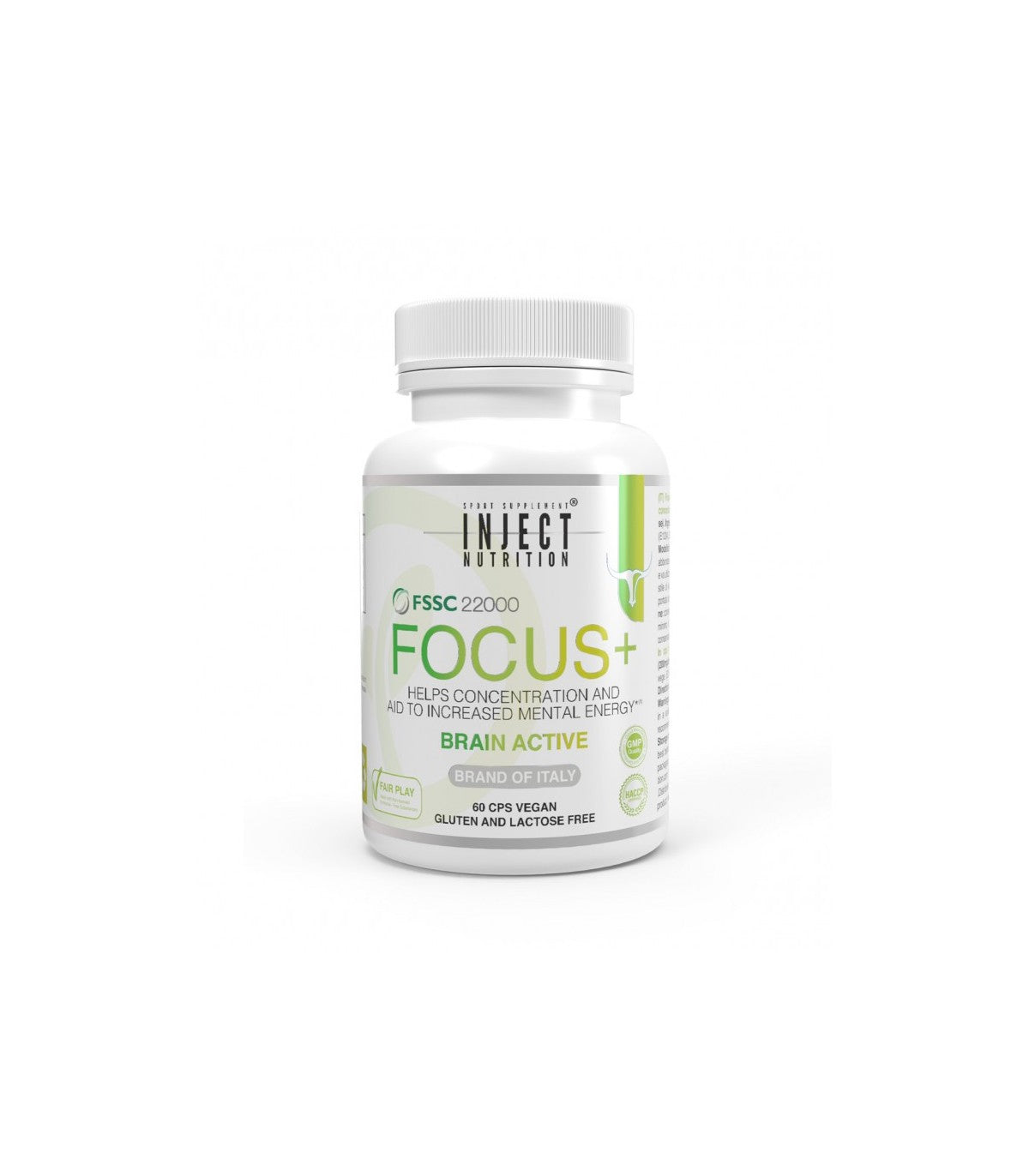FOCUS+ è uno speciale ATTIVATORE DELLA MENTE, specificatamente ideato e formulato da Inject Nutrition per favorire la concentrazione, l'attenzione e la resistenza alla fatica. Uno speciale mix che contribuisce alla riduzione della stanchezza enfatizzandone la vigilanza mentale. Particolarmente indicato per gli studenti nei periodi di studio intensivo e per gli atleti in fase di preparazione alle gare.