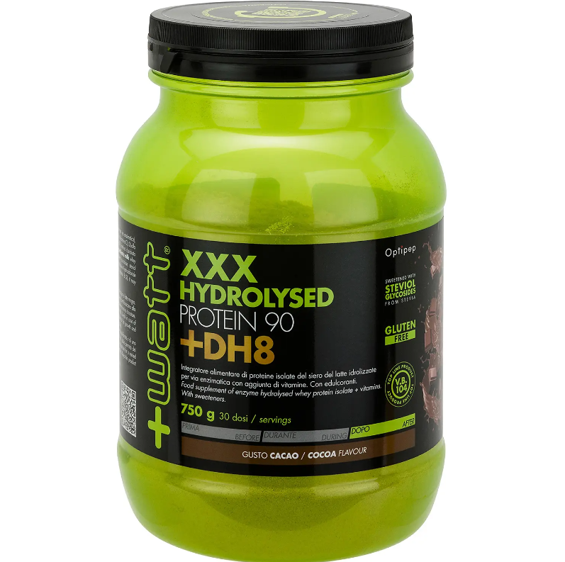 XXX Hydrolyzed Protein 90 +DH8 è un integratore alimentare di proteine del siero del latte idrolizzate, arricchito con vitamine essenziali. Con un contenuto proteico dell’88% e un bassissimo contenuto di lattosio (< 0,2 g per dose), è ideale per sportivi e chi segue diete ipocaloriche o bilanciate. Grazie alla tecnologia di idrolisi enzimatica, offre proteine “predigerite” che garantiscono un’assimilazione rapida e completa degli aminoacidi, ottimizzando il recupero muscolare e sostenendo la crescita e il mantenimento della massa magra.