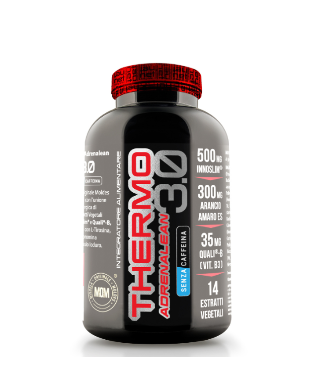 - Effetto termogenico potenziato: THERMO ADRENALEAN 3.0 con caffeina è un integratore termogenico con stimolanti ad alta titolazione, studiato per aumentare il metabolismo energetico (termogenesi) e attivare la lipolisi.